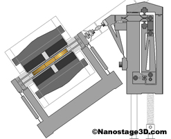 The unconstrained translation of each axis is actuated with a Lorentz type duo-motor. The rectangular coil of this actuator (57 N/A) is integrated into the ceramic boxshaped bridge of the parallelogram to maximize the stiffness in the direction of actuation (figure 1). Permanent magnets are suspended above and below the coil by bridge-like supports.
